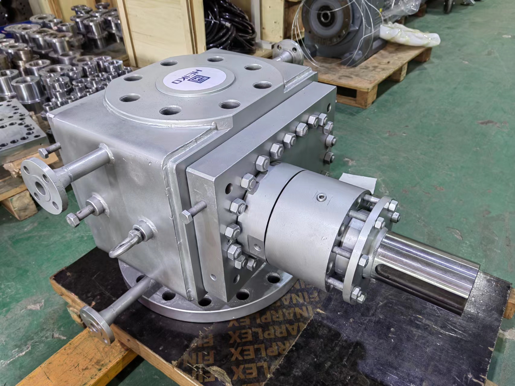排出過程:當齒輪旋轉到另一位置時,齒輪間的容積減小,熔體被擠出泵腔,并通過出口管道輸送到下游工藝或系統。
